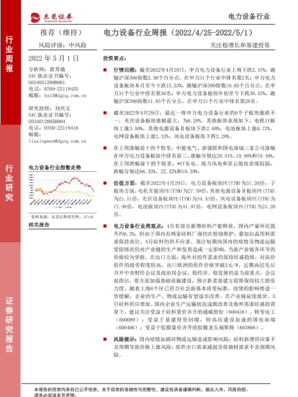 【东莞证券】【20220501】电力设备行业周报:关注稳增长和基建投资-13页