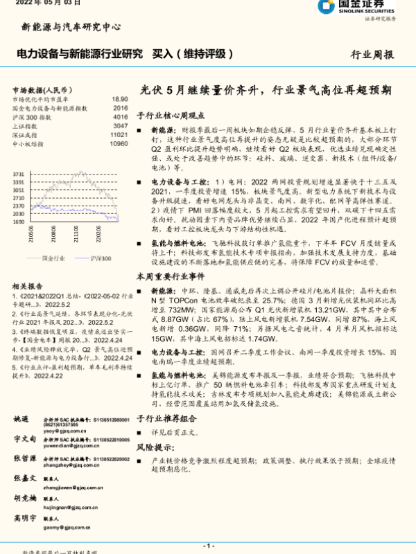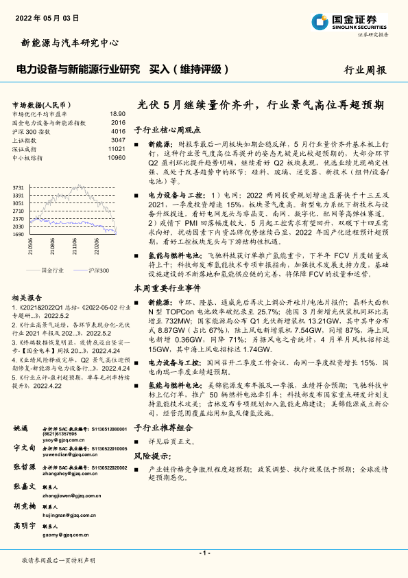 【国金证券】【20220503】电力设备与新能源行业研究:光伏5月继续量价齐升,行业景气高位再超预期-14页