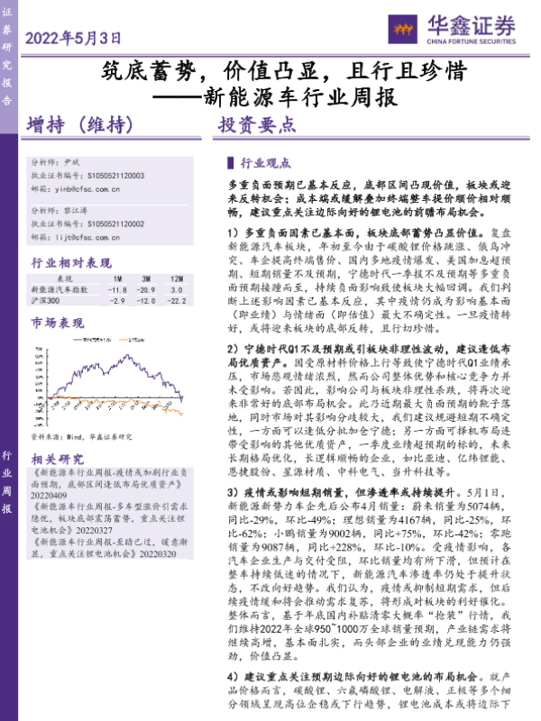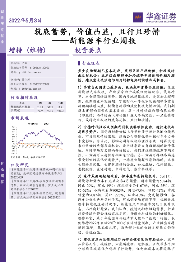 【华鑫证券】【20220503】筑底蓄势,价值凸显,且行且珍惜 ——新能源车行业周报-19页