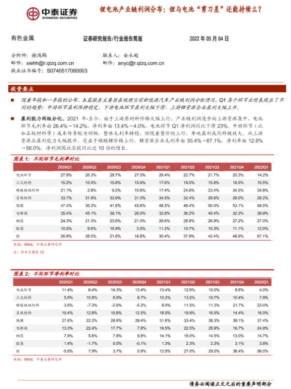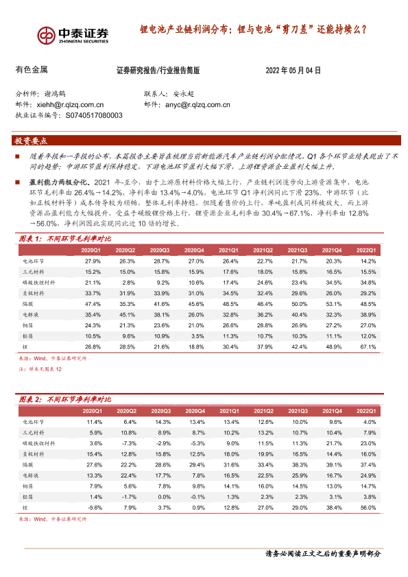 【中泰证券】【20220504】锂电池产业链利润分布:锂与电池“剪刀差”还能持续么?-6页