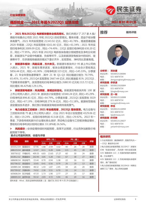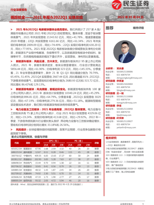 业绩总结 投资推荐 新能源 电力设备 行业分析