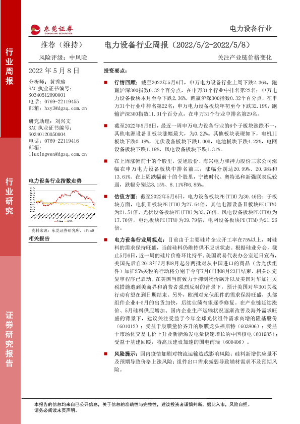 【东莞证券】【20220508】电力设备行业周报:关注产业链价格变化-13页