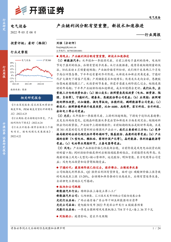 【开源证券】【20220508】电气设备行业周报:产业链利润分配有望重塑,新技术加速推进-24页