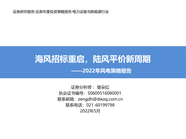 【东吴证券】【202205】2022年风电策略报告:海风招标重启,陆风平价新周期-49页