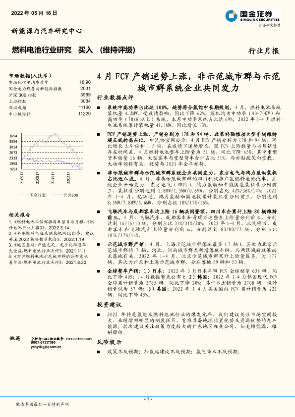 【国金证券】【20220516】20220516-国金证券-燃料电池行业月报:4月FCV产销逆势上涨,非示范城市群与示范城市群系统企业共同发力-10页