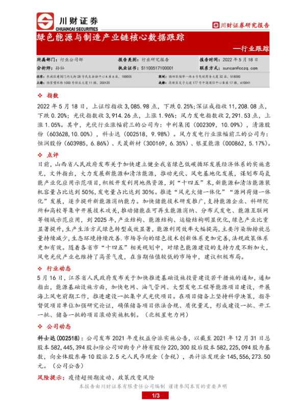【川财证券】【20220518】绿色能源与制造产业链核心数据跟踪-3页