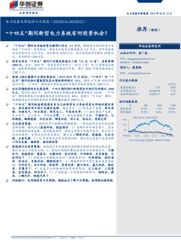 【华创证券】【20220522】20220522-华创证券-电力设备及新能源行业周报:“十四五”期间新型电力系统有何投资机会?-22页