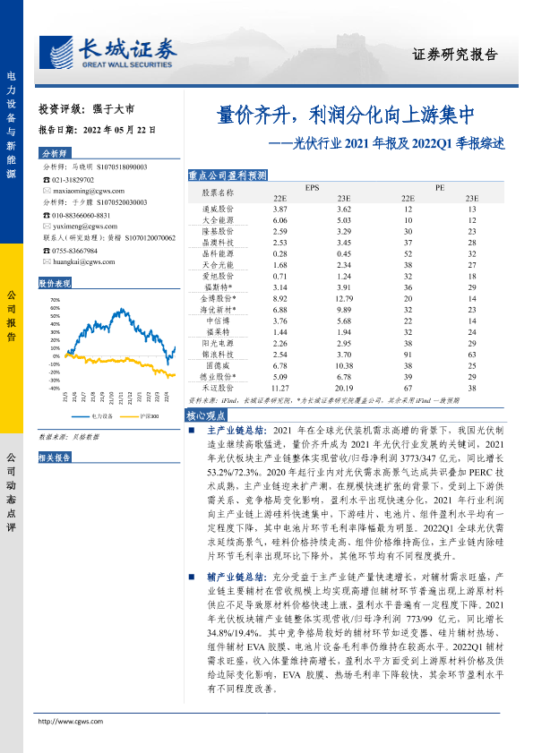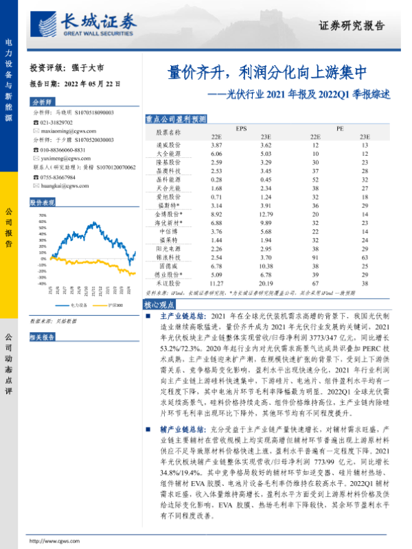 【长城证券】【20220522】光伏行业2021年报及2022Q1季报综述:量价齐升,利润分化向上游集中-19页