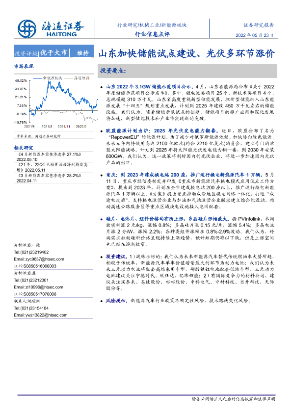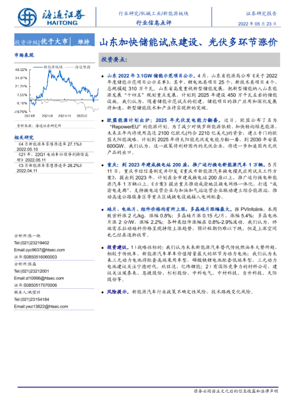 【海通证券】【20220523】20220523-海通证券-新能源板块行业信息点评:山东加快储能试点建设、光伏多环节涨价-2页
