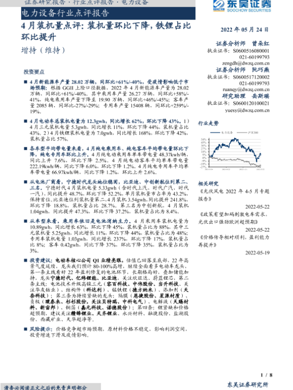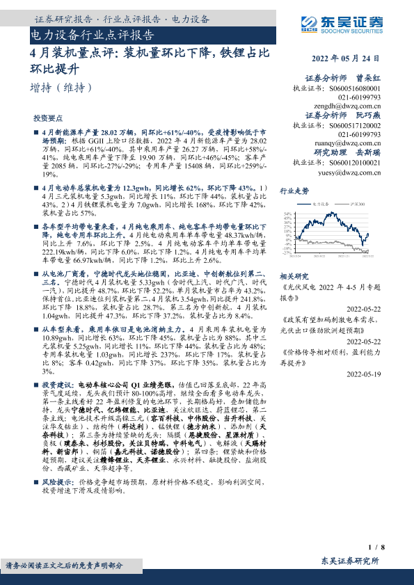 【东吴证券】【20220524】20220524-东吴证券-电力设备行业点评报告:4月装机量点评:装机量环比下降,铁锂占比环比提升-8页