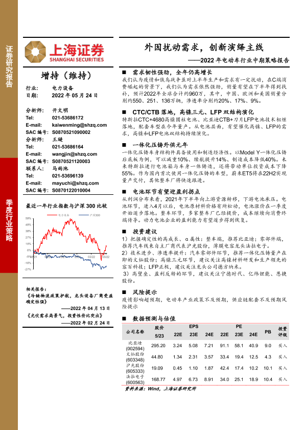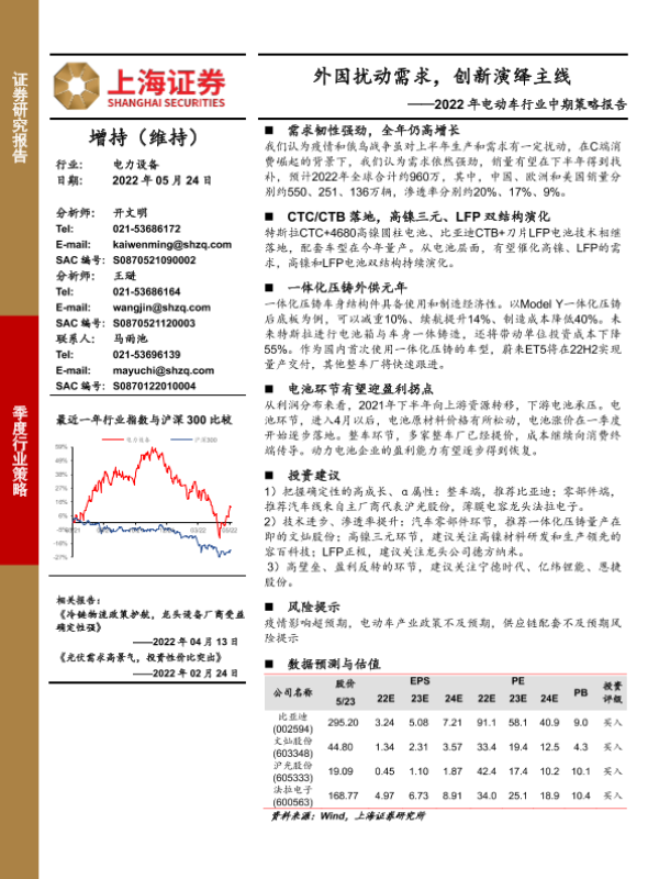 【上海证券】【20220524】2022年电动车行业中期策略报告:外因扰动需求,创新演绎主线-25页