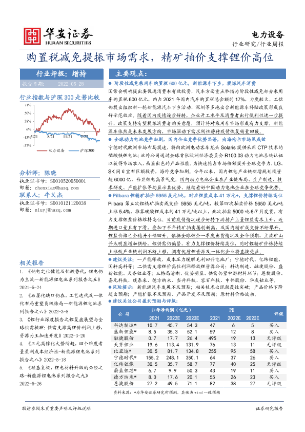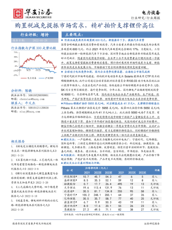 【华安证券】【20220528】电力设备行业周报:购置税减免提振市场需求,精矿拍价支撑锂价高位-25页