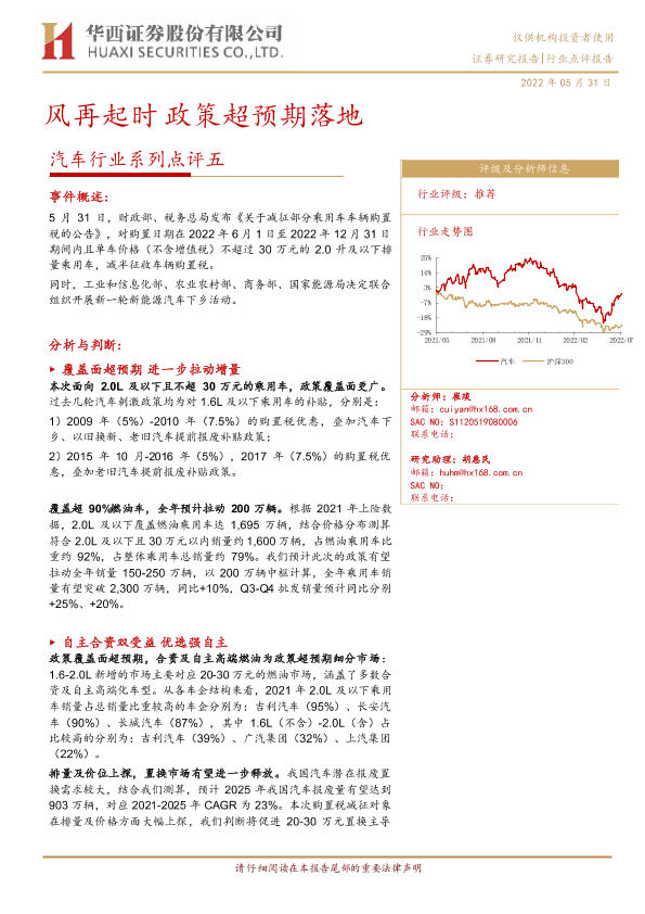 【华西证券】【20220531】20220531-华西证券-汽车行业系列点评五:风再起时 政策超预期落地-8页