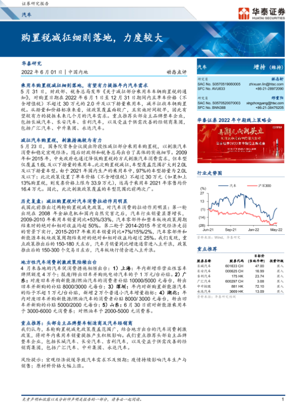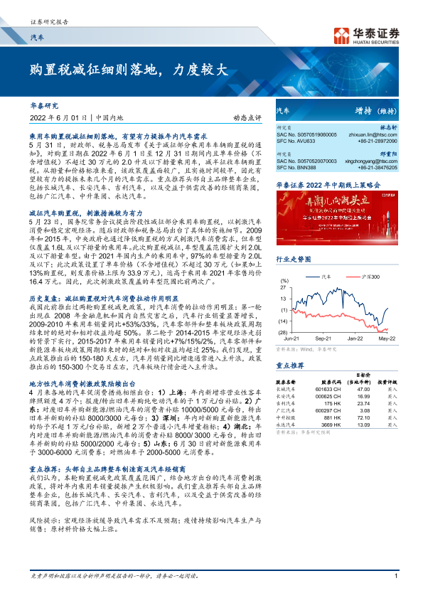 【华泰证券】【20220601】汽车动态点评:购置税减征细则落地,力度较大-7页