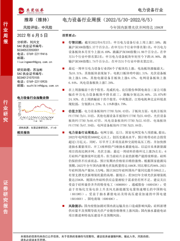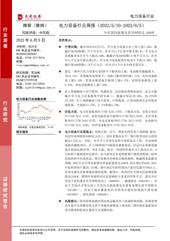 【东莞证券】【20220605】20220605-东莞证券-电力设备行业周报:今年国内新增光伏并网将达108GW-13页