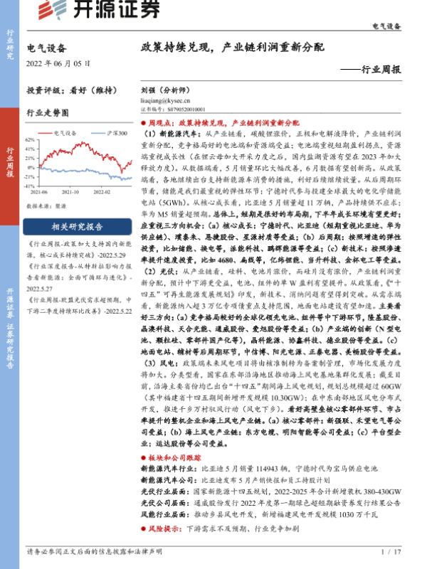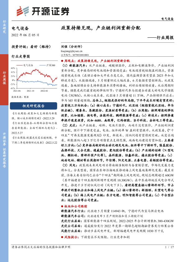 【开源证券】【20220605】电气设备行业周报:政策持续兑现,产业链利润重新分配-17页