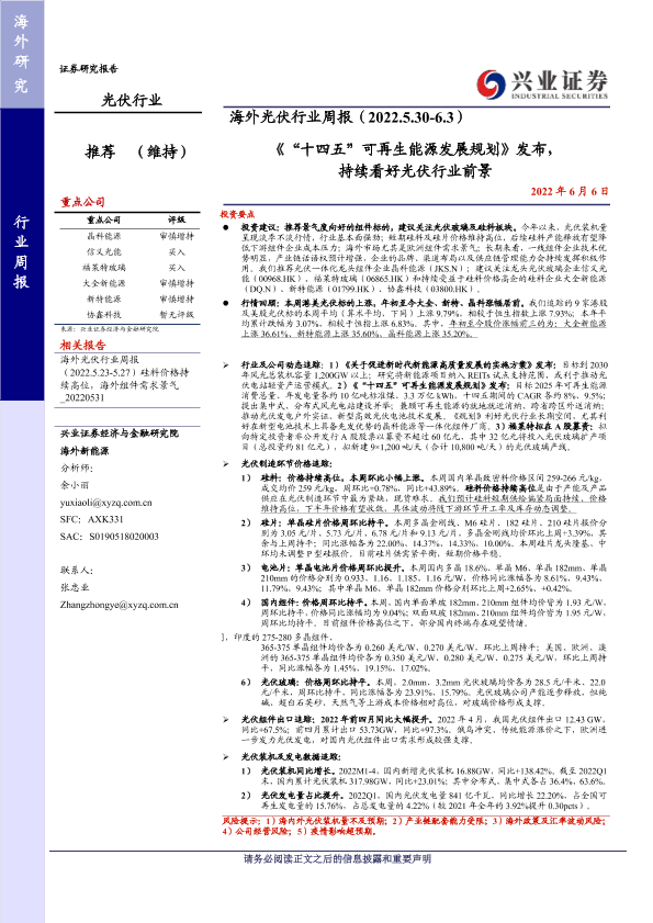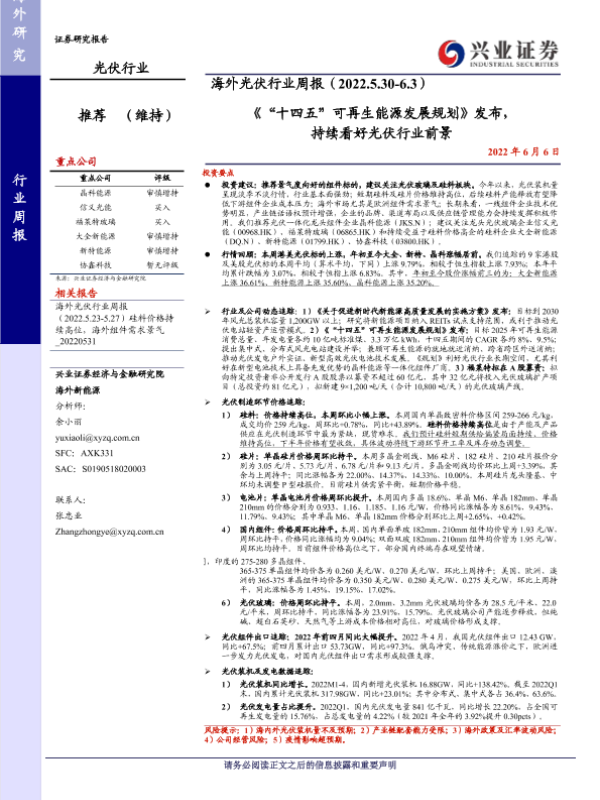 【兴业证券】【20220606】《“十四五”可再生能源发展规划》发布,持续看好光伏行业前景-16页