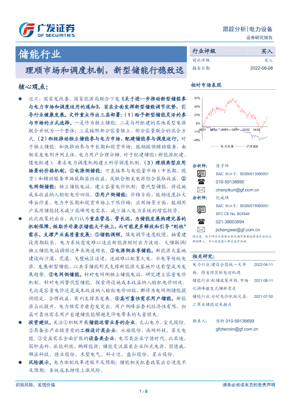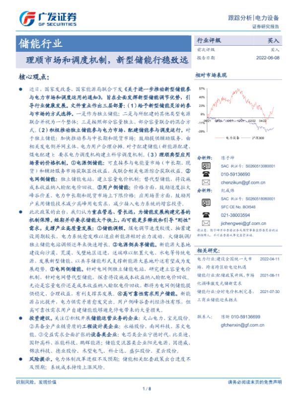 【广发证券】【20220608】储能行业:理顺市场和调度机制,新型储能行稳致远-8页