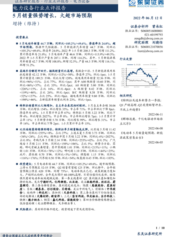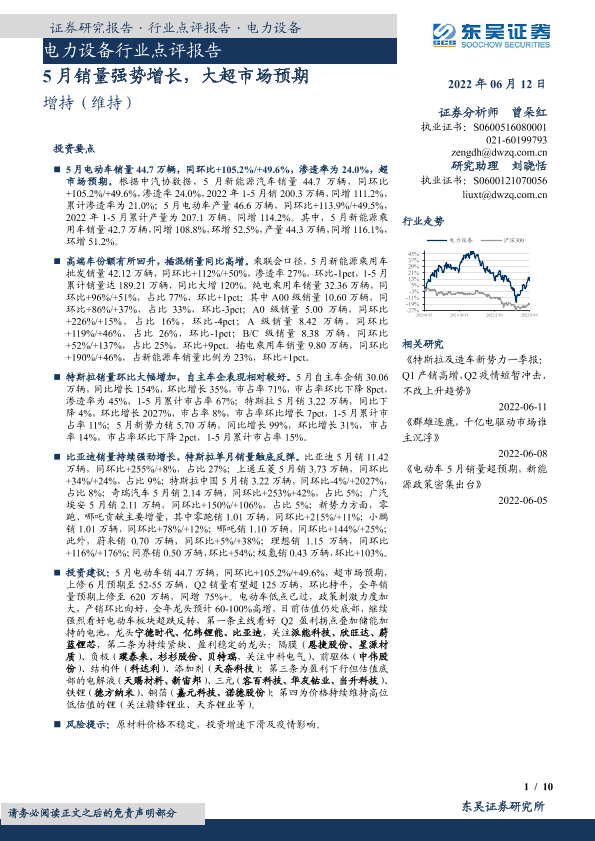 【东吴证券】【20220612】电力设备行业点评报告:5月销量强势增长,大超市场预期-10页