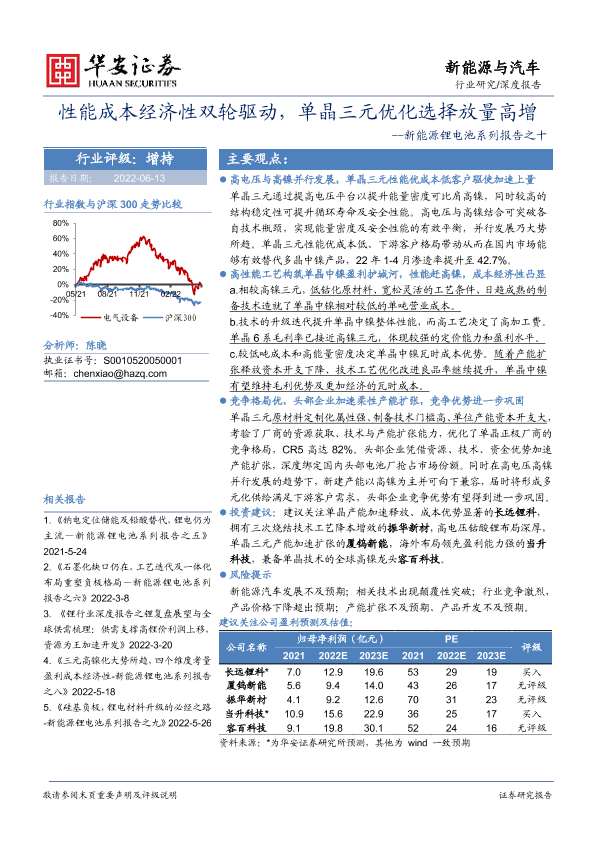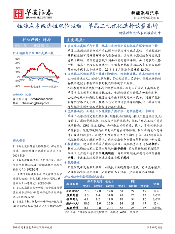 【华安证券】【20220613】性能成本经济性双轮驱动,单晶三元优化选择放量高增-18页