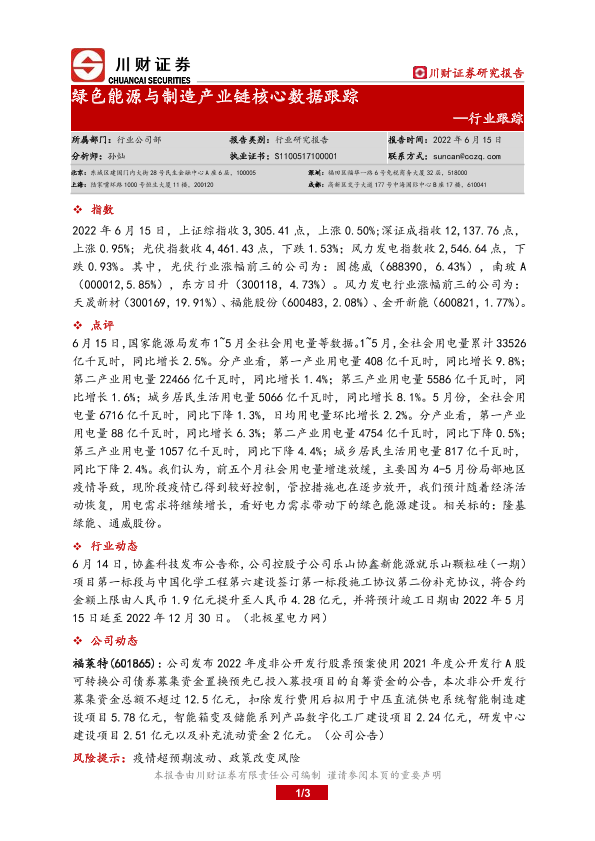 【川财证券】【20220615】绿色能源与制造产业链核心数据跟踪-3页