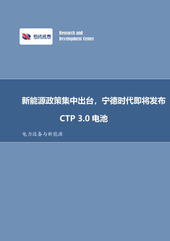 CTP3.0电池 宁德时代 新能源政策 新能源汽车 电力设备