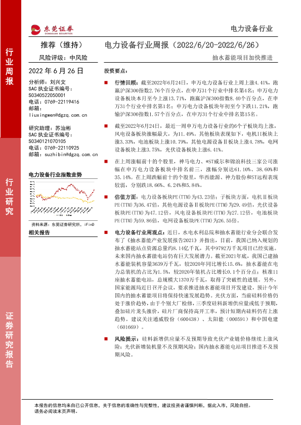【东莞证券】【20220626】电力设备行业周报:抽水蓄能项目加快推进-13页