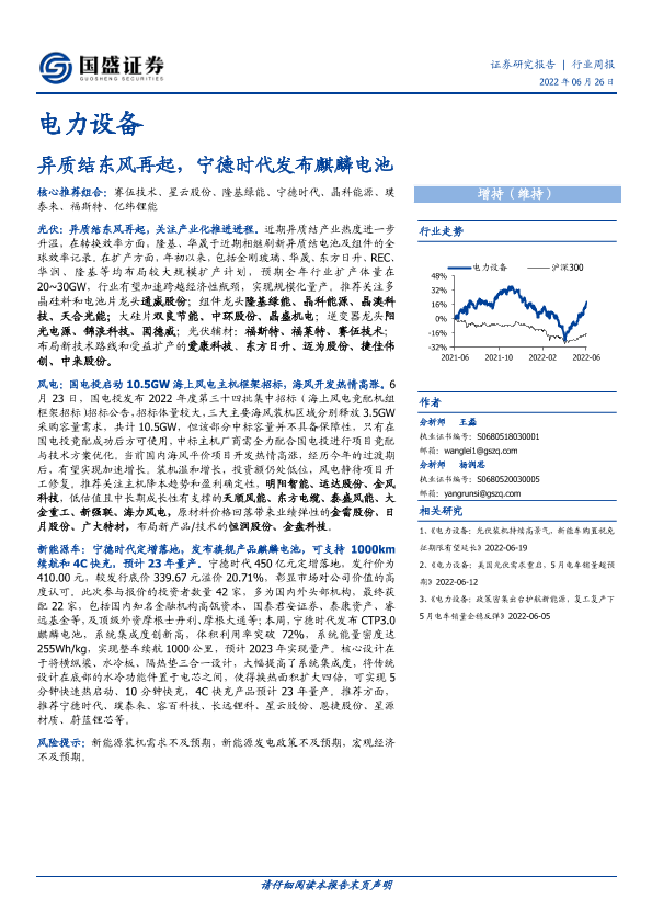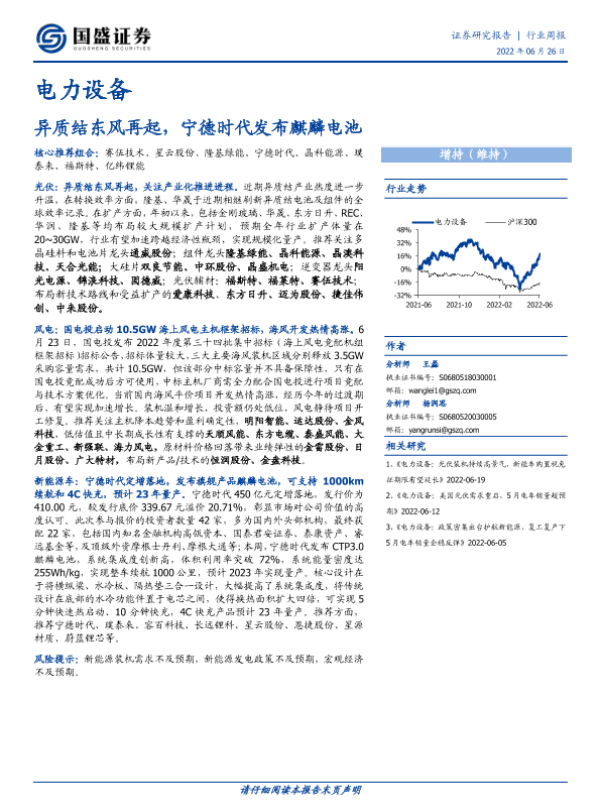【国盛证券】【20220626】电力设备行业周报:异质结东风再起,宁德时代发布麒麟电池-16页