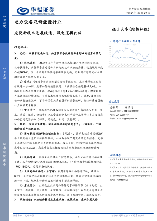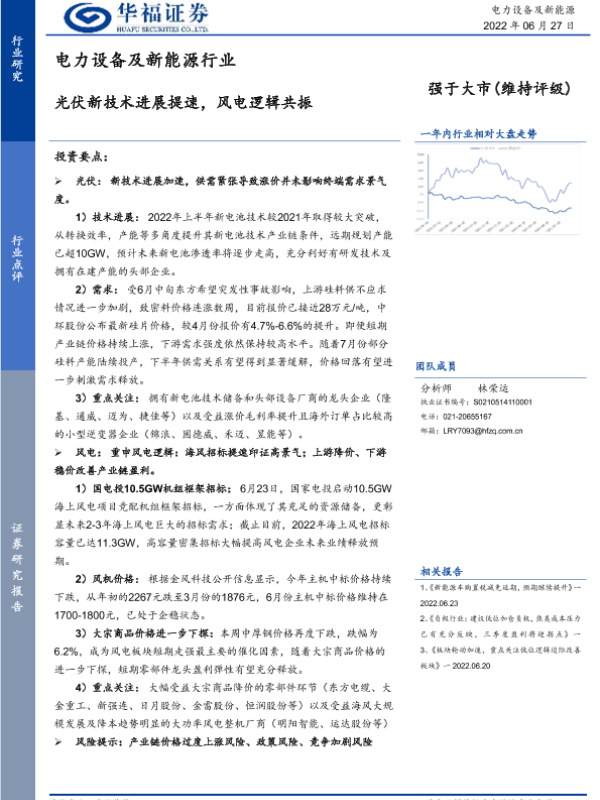 【华福证券】【20220627】电力设备及新能源行业:光伏新技术进展提速,风电逻辑共振-2页