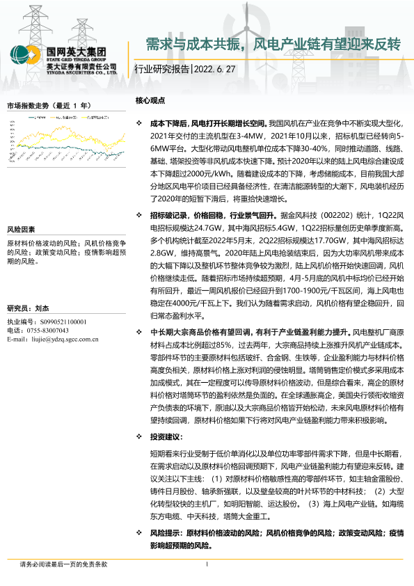 【英大证券】【20220627】电力设备行业研究报告:需求与成本共振,风电产业链有望迎来反转-13页