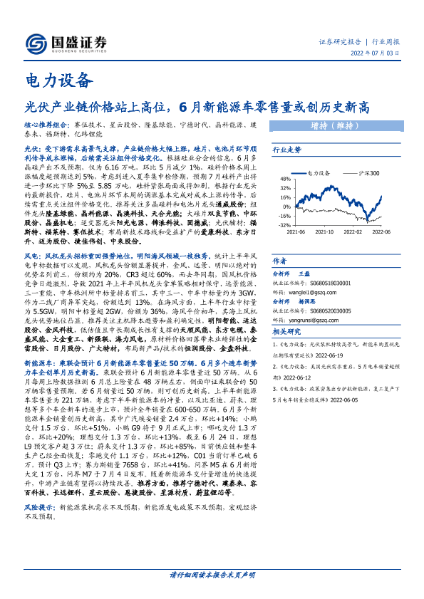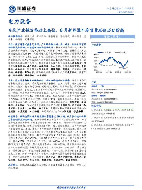 【国盛证券】【20220703】电力设备行业周报:光伏产业链价格站上高位,6月新能源车零售量或创历史新高-17页