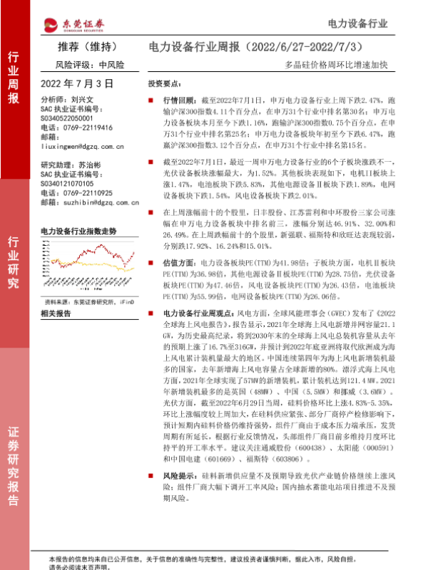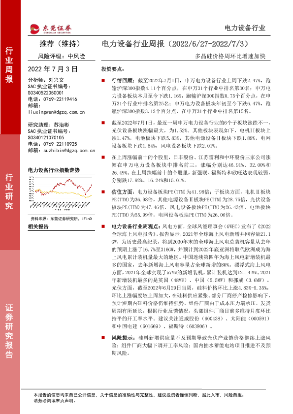 【东莞证券】【20220703】电力设备行业周报:多晶硅价格周环比增速加快-13页