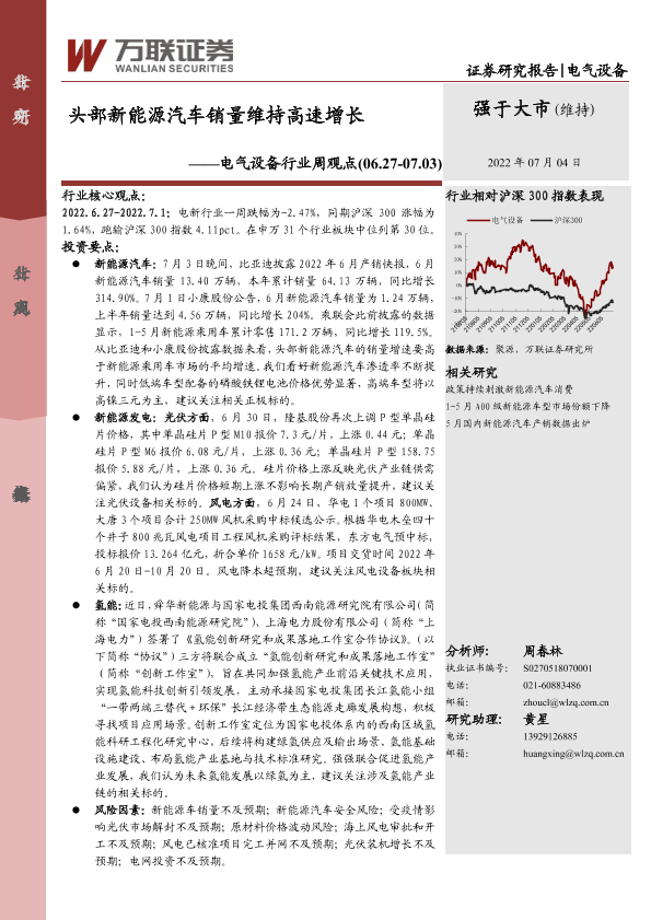 【万联证券】【20220704】电气设备行业周观点:头部新能源汽车销量维持高速增长-11页