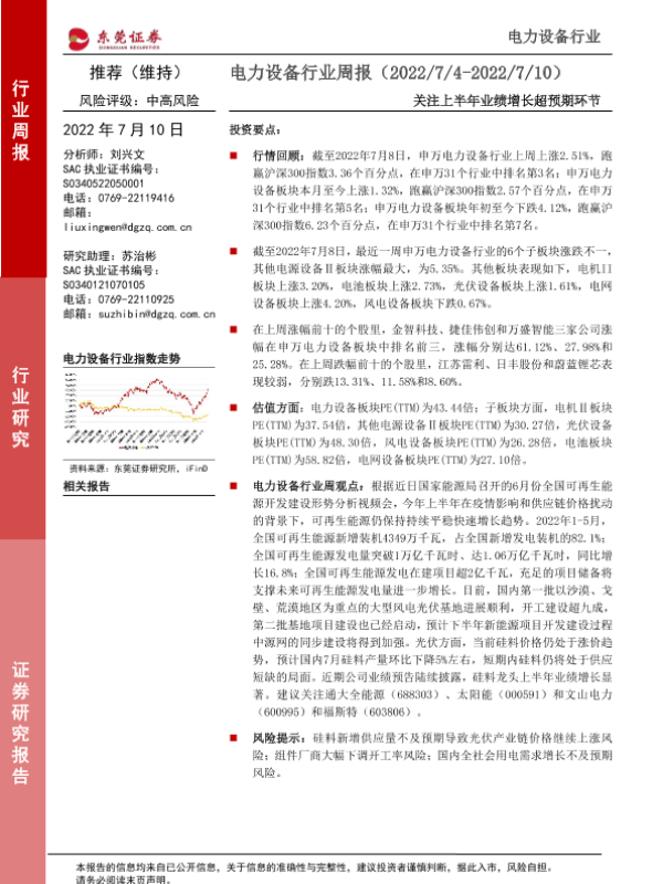 【东莞证券】【20220710】电力设备行业周报:关注上半年业绩增长超预期环节-14页