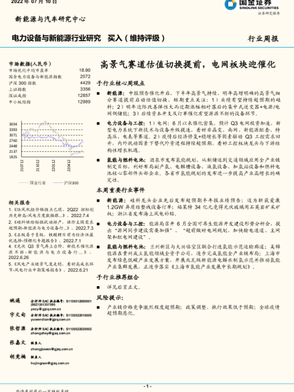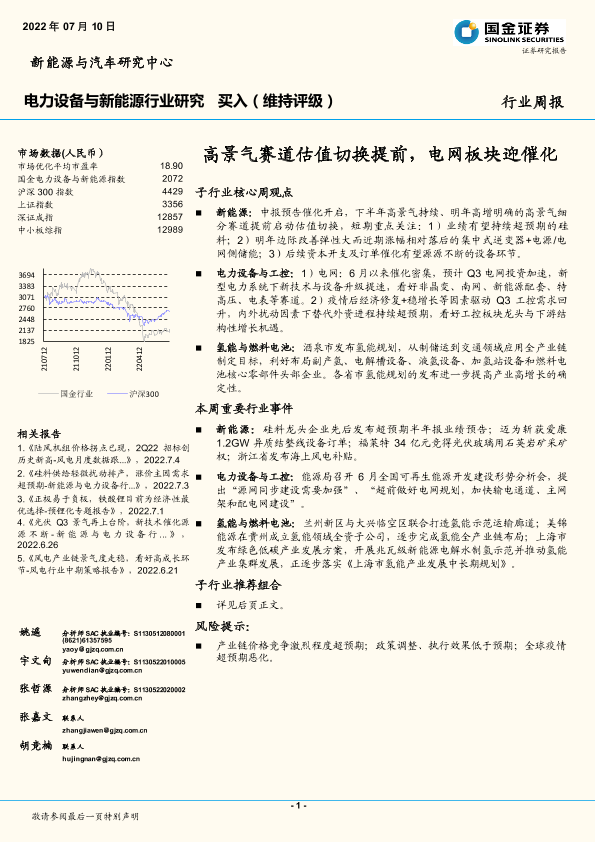 【国金证券】【20220710】电力设备与新能源行业研究:高景气赛道估值切换提前,电网板块迎催化-13页