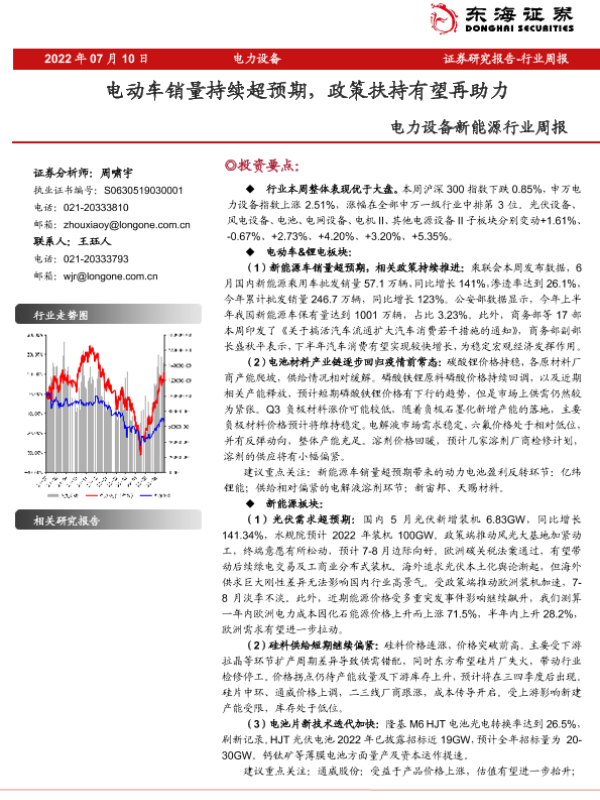【东海证券】【20220710】20220710-东海证券-电力设备新能源行业周报:电动车销量持续超预期,政策扶持有望再助力-24页