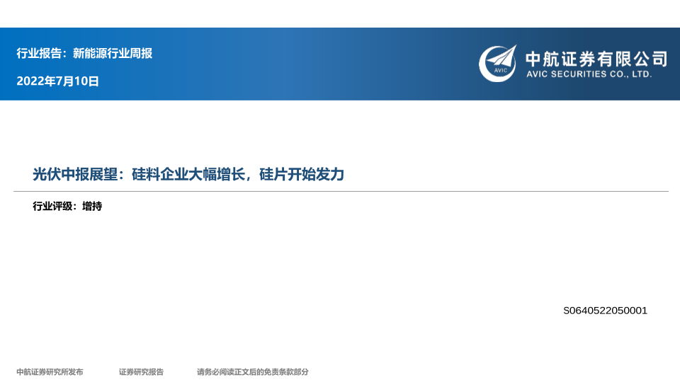 【中航证券】【20220710】20220710-中航证券-新能源行业周报:光伏中报展望:硅料企业大幅增长,硅片开始发力-9页