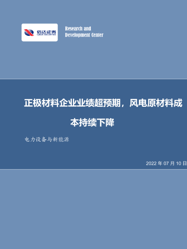 【信达证券】【20220710】电力设备与新能源行业周报:正极材料企业业绩超预期,风电原材料成本持续下降-9页