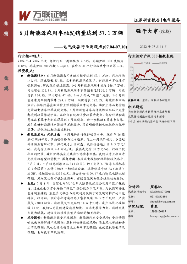 【万联证券】【20220711】电气设备行业周观点:6月新能源乘用车批发销量达到57.1万辆-11页