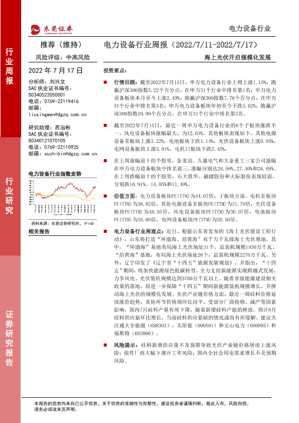 【东莞证券】【20220717】电力设备行业周报:海上光伏开启规模化发展-14页