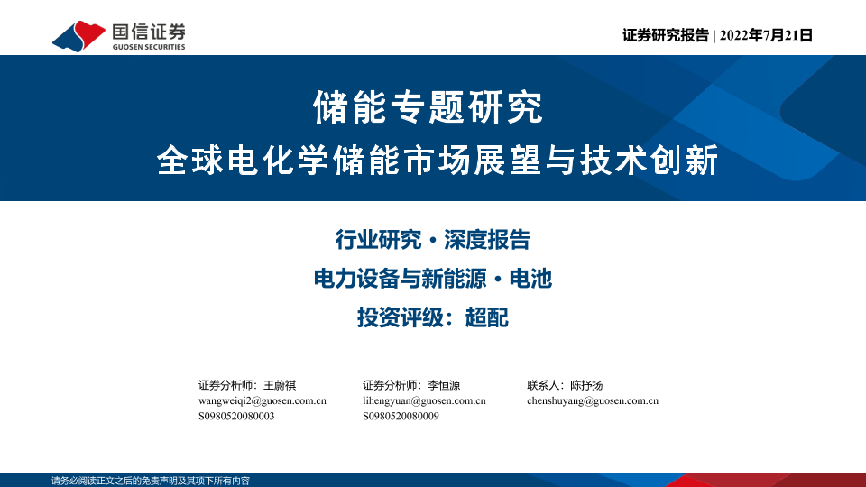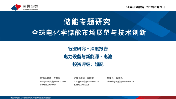 【国信证券】【20220721】全球电化学储能市场展望与技术创新-50页