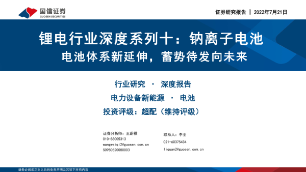 【国信证券】【20220721】锂电行业深度系列十:钠离子电池-电池体系新延伸,蓄势待发向未来-45页