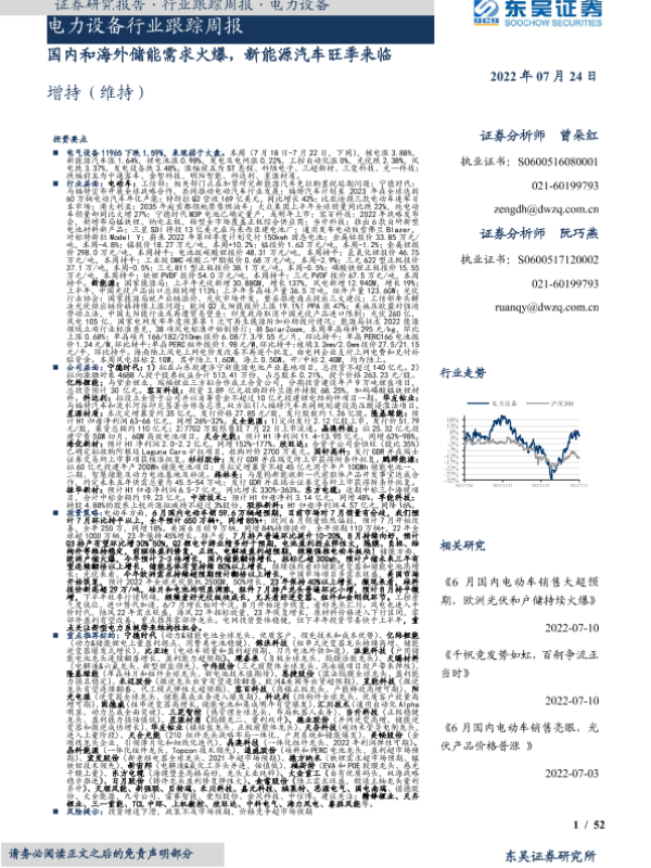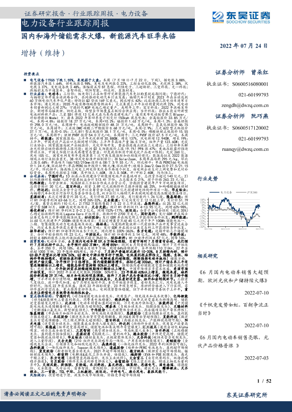 【东吴证券】【20220724】电力设备行业跟踪周报:国内和海外储能需求火爆,新能源汽车旺季来临-52页