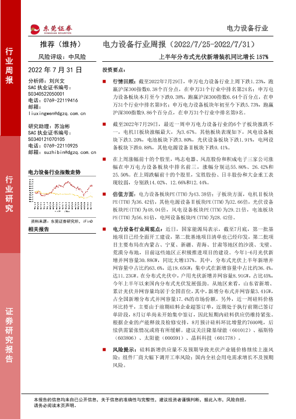 【东莞证券】【20220731】20220731-东莞证券-电力设备行业周报:上半年分布式光伏新增装机同比增长157%-14页