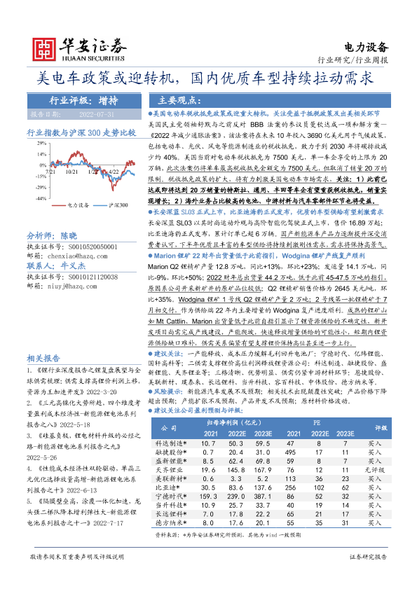 【华安证券】【20220731】电力设备行业周报:美电车政策或迎转机,国内优质车型持续拉动需求-23页