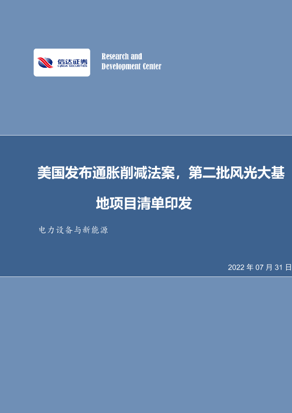 【信达证券】【20220731】美国发布通胀削减法案,第二批风光大基地项目清单印发-8页