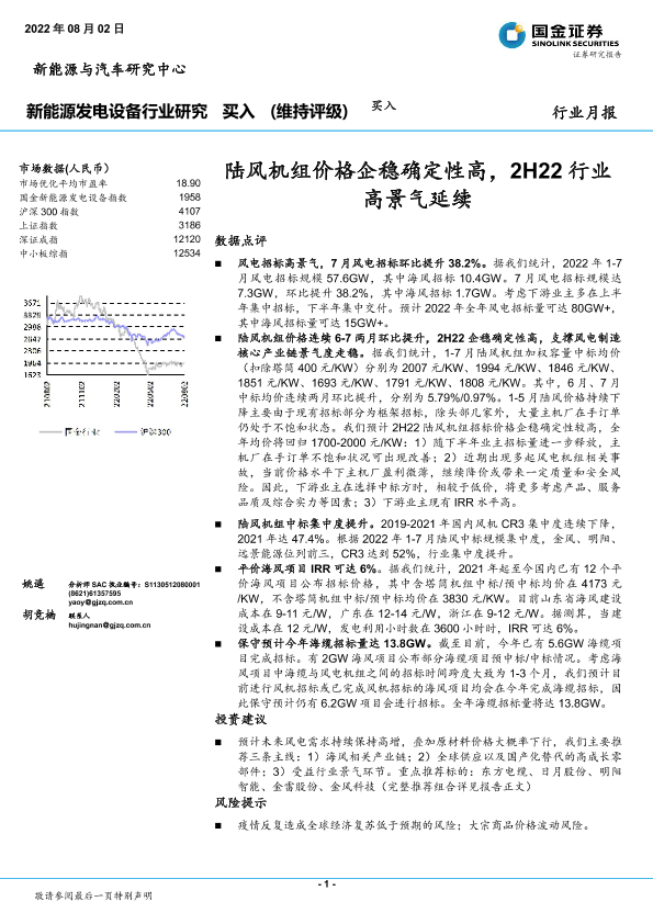 【国金证券】【20220802】20220802-国金证券-新能源发电设备行业研究:陆风机组价格企稳确定性高,2H22行业高景气延续-15页