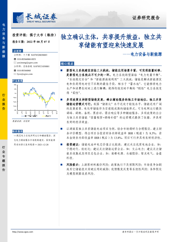 【长城证券】【20220807】独立确认主体,共享提升效益,独立共享储能有望迎来快速发展-13页