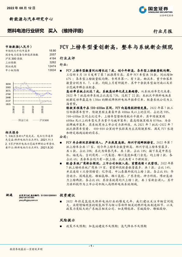 【国金证券】【20220812】20220812-国金证券-燃料电池行业研究:FCV上榜车型量创新高,整车与系统新企频现-7页