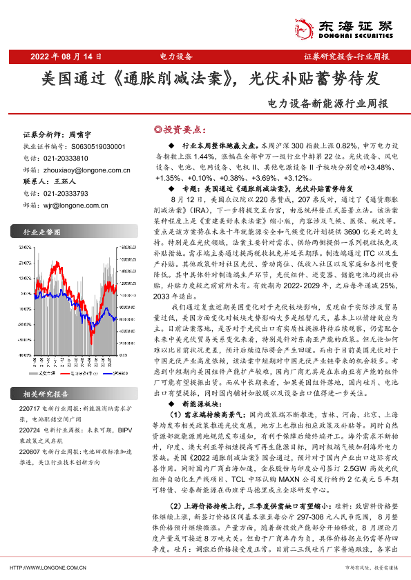【东海证券】【20220814】电力设备新能源行业周报:美国通过《通胀削减法案》,光伏补贴蓄势待发-28页